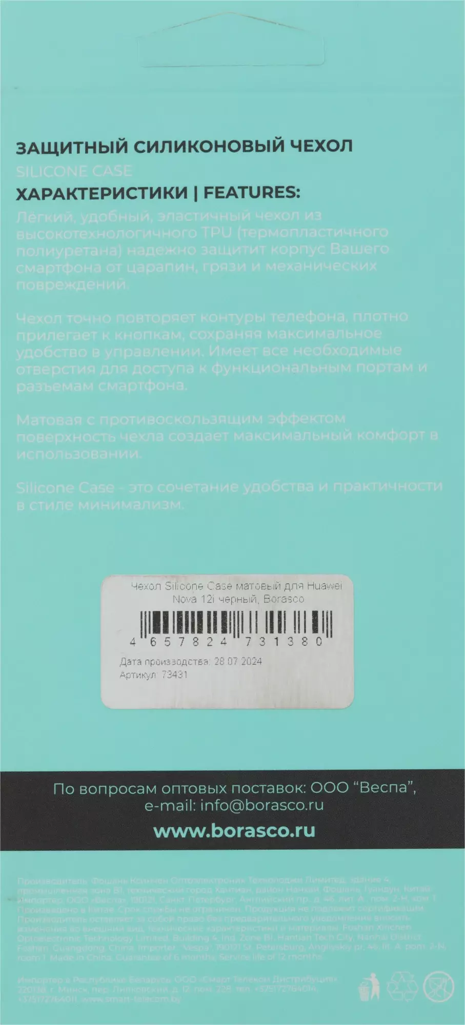 Чехол BoraSCO Silicone Case, для Huawei Nova 12i, черный (73431)