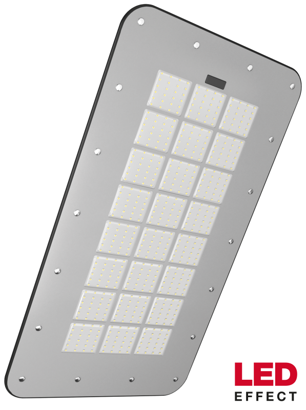 Потребляемая мощность 270 Вт, световой поток 43200 лм, цветовая температура 5000 К, степень защиты IP67, длина 650 мм, ширина 370 мм, высота 95 мм, кривая силы света (КСС) - Д
