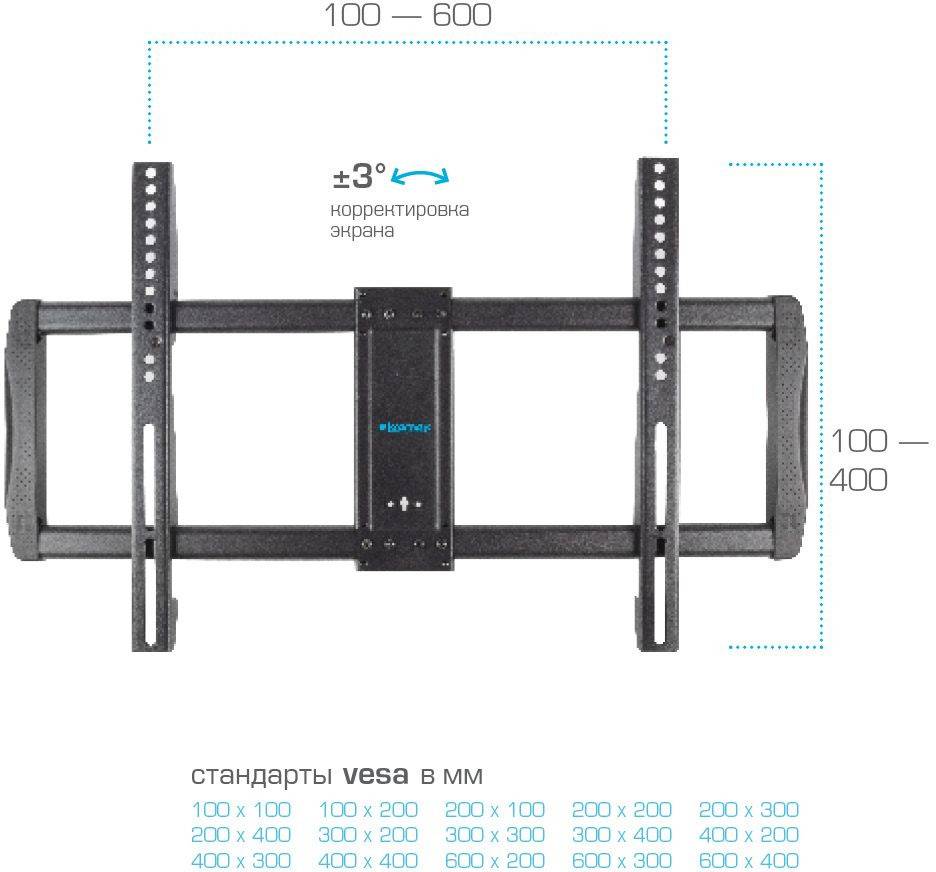 • Поддержка крепления VESA 200x100, 200x200, 200x300, 300x200, 300x300, 400x200, 400x300, 400x400, 600x400