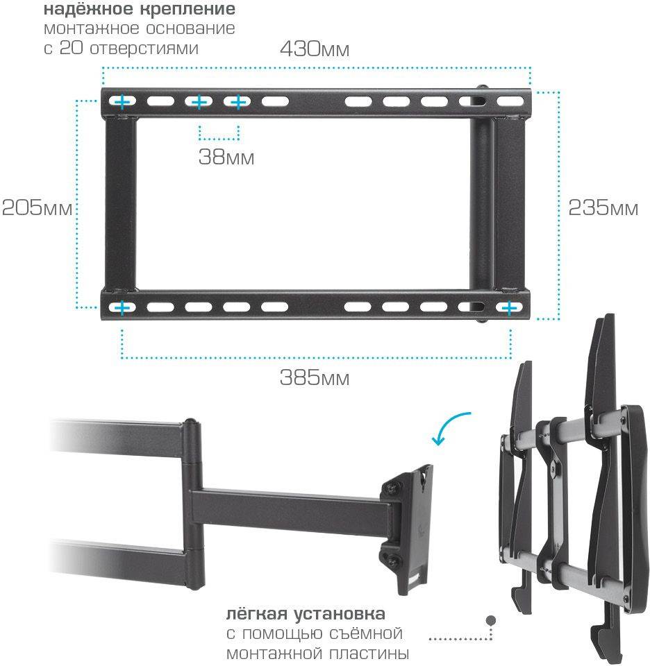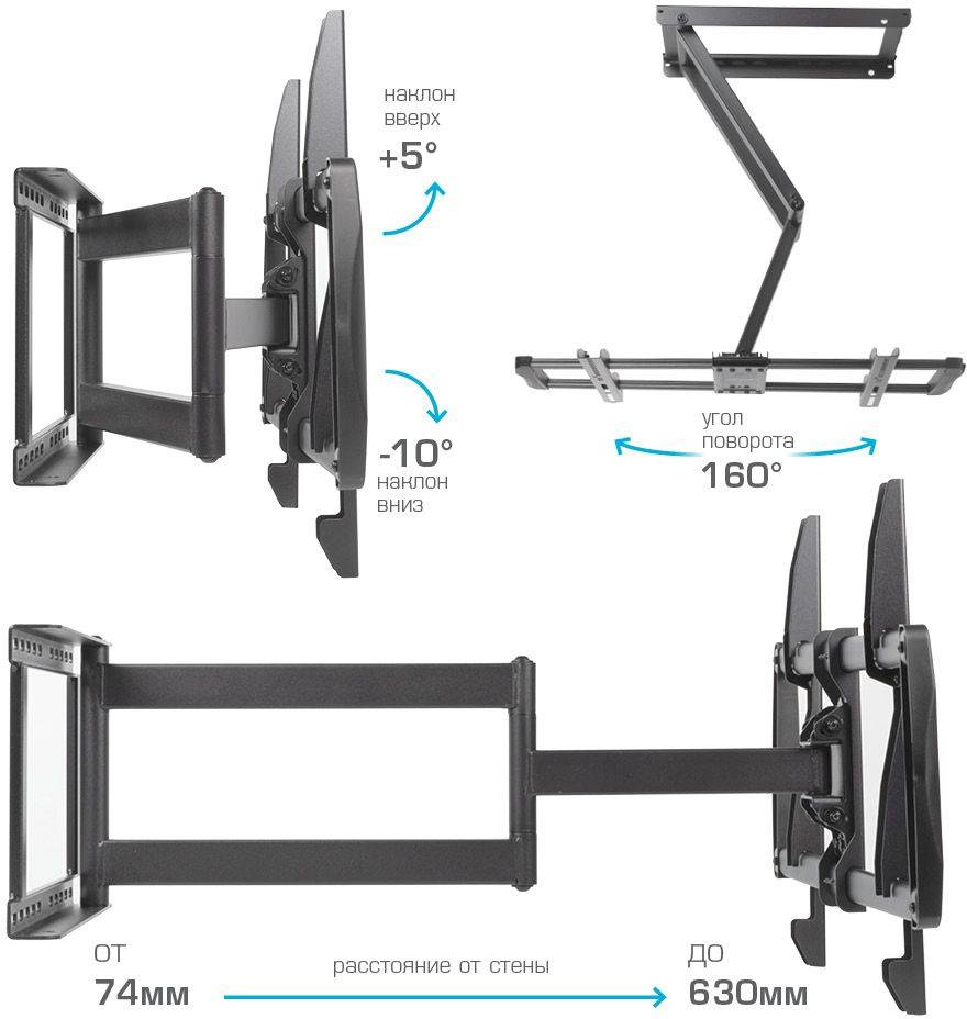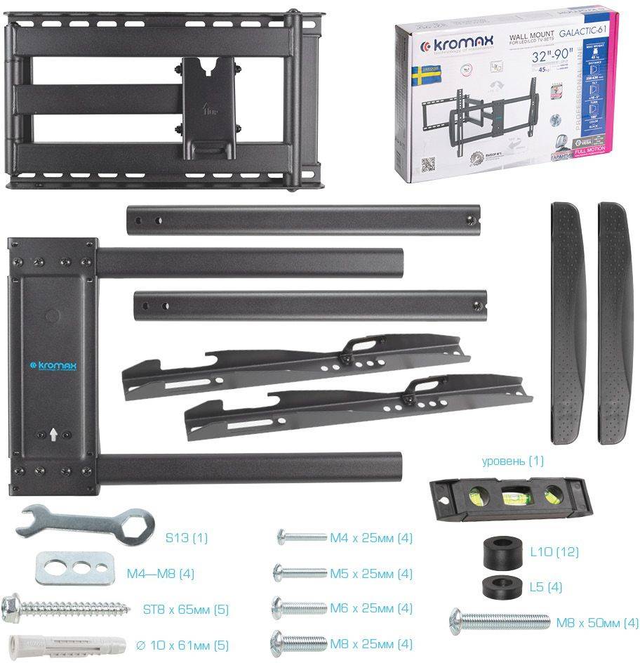 Кронштейн для телевизора Kromax GALACTIC-61, 32-90", настенный, поворот и наклон, черный (90217)