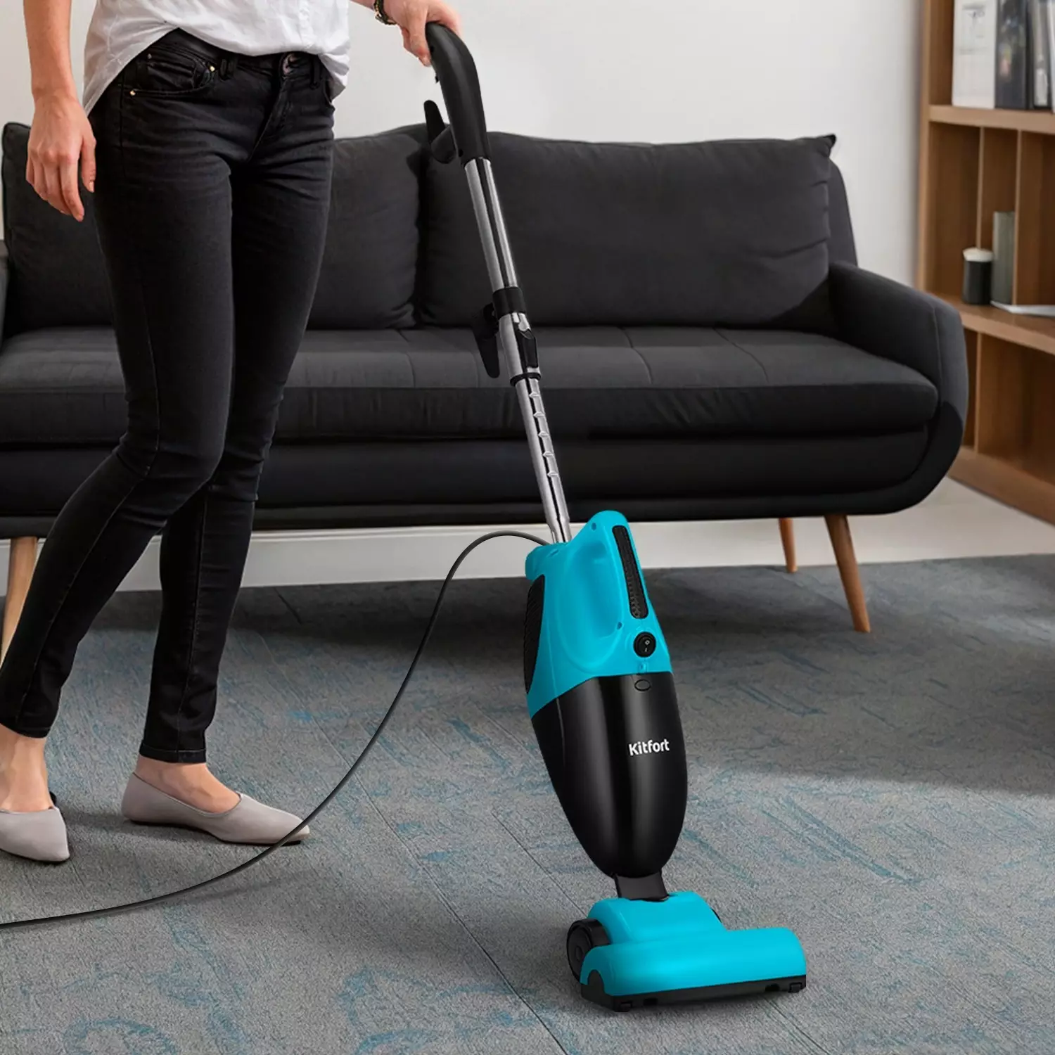 Пылесос Kitfort КТ-5544 черный/голубой (kt-5544)