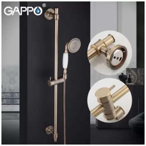 Современный душевой гарнитур G8017-4 GAPPO (ГАППО) с однопозиционной душевой лейкой, шлангом (1500 мм), вращающимся на 360 градусов и удлиняющимся на 35 процентов и металлической стойкой. Выполнена в цвете хром, высота 708 мм. Для установки в ваннах, душевых углах и кабинах. Гарантия на изделие 1 год.