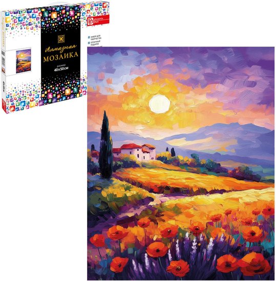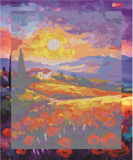 Комплектацияоснова для картины, стилус, лоток для страз, набор страз, силиконовая подушечка, клей, подвесы для подрамника, пинцет, схема, подрамник, пакеты с zip-молнией