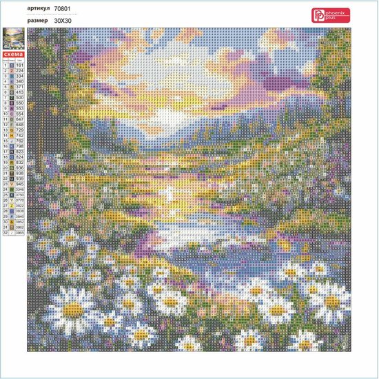 • Комплектация основа для картины, набор страз, лоток для страз, стилус, силиконовая подушечка, клей, пинцет, схема, пакеты с zip-молнией