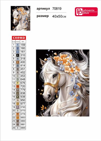 • Комплектация основа для картины, набор страз, лоток для страз, стилус, силиконовая подушечка, клей, пинцет, схема, пакеты с zip-молнией