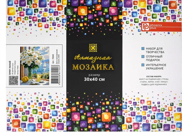 ❗️Текст описания составлен при помощи искусственного интеллекта.✅ Погрузитесь в мир творчества с набором алмазной вышивки Феникс+ Букет лилий! Этот уникальный комплект позволит вам создать великолепное произведение искусства, которое станет настоящим украшением вашего интерьера. ✅ Набор включает в себя все необходимые материалы для полной выкладки: холст на подрамнике, 28 цветов квадратных страз и инструменты для удобной работы. Вы сможете насладиться процессом создания картины, используя стилус, лоток для страз и пинцет. ✅ Тематика "цветы" и "растения" в этом наборе вдохновит вас на творчество и поможет расслабиться. Алмазная вышивка — это не только увлекательное хобби, но и отличный способ провести время с пользой. ⚠️ Обратите внимание, что данный набор подходит как для новичков, так и для опытных мастеров. С его помощью вы сможете создать яркое и живое изображение, которое будет радовать глаз и поднимать настроение. ✅ Размер готовой картины 40 см на 30 см идеально впишется в любой интерьер, а качественные материалы гарантируют долговечность вашего произведения. Не упустите возможность окунуться в мир алмазной вышивки и создать что-то поистине уникальное!❗️Текст описания составлен при помощи искусственного интеллекта.✅ Погрузитесь в мир творчества с набором алмазной вышивки Феникс+ Букет лилий! Этот уникальный комплект позволит вам создать великолепное произведение искусства, которое станет настоящим украшением вашего интерьера. ✅ Набор включает в себя все необходимые материалы для полной выкладки: холст на подрамнике, 28 цветов квадратных страз и инструменты для удобной работы. Вы сможете насладиться процессом создания картины, используя стилус, лоток для страз и пинцет. ✅ Тематика "цветы" и "растения" в этом наборе вдохновит вас на творчество и поможет расслабиться. Алмазная вышивка — это не только увлекательное хобби, но и отличный способ провести время с пользой. ⚠️ Обратите внимание, что данный набор подходит как для новичков, так и для опытных мастеров. С его помощью вы сможете создать яркое и живое изображение, которое будет радовать глаз и поднимать настроение. ✅ Размер готовой картины 40 см на 30 см идеально впишется в любой интерьер, а качественные материалы гарантируют долговечность вашего произведения. Не упустите возможность окунуться в мир алмазной вышивки и создать что-то поистине уникальное!