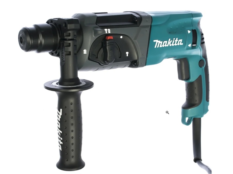 Перфоратор Makita HR 2470 имеет двойную защитную изоляцию. Он может работать как отбойный молоток и как дрель. При обратном вращении (реверс), двигатель работает с той же скоростью и крутящим моментом.