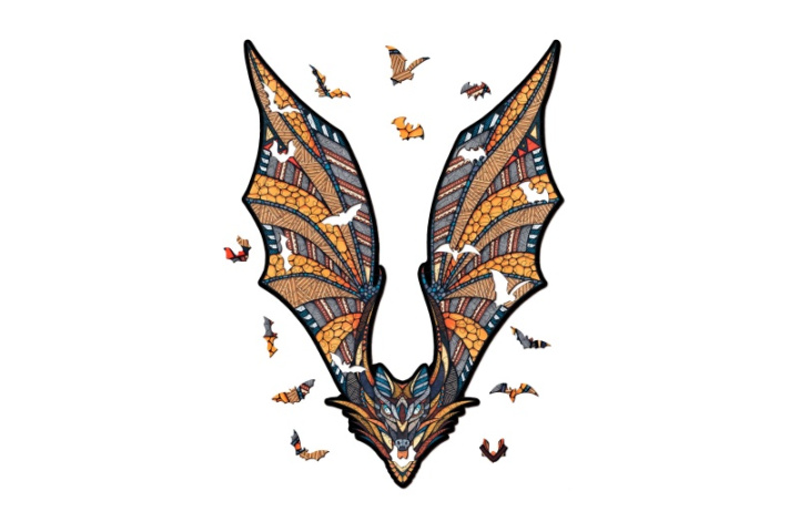 Этот пазл – настоящее произведение искусства. 250 деталей в форме животных и природных элементов складываются в детализированное изображение летучей мыши. Процесс сборки требует терпения, но результат впечатляет! Готовую картину можно повесить на стену как стильный интерьерный акцент.