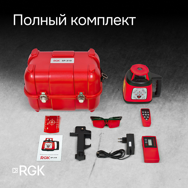 RGK SP-310 - ротационный нивелир (ротационный / красный луч / 600м с приемником / ±0,15 мм / АКБ)