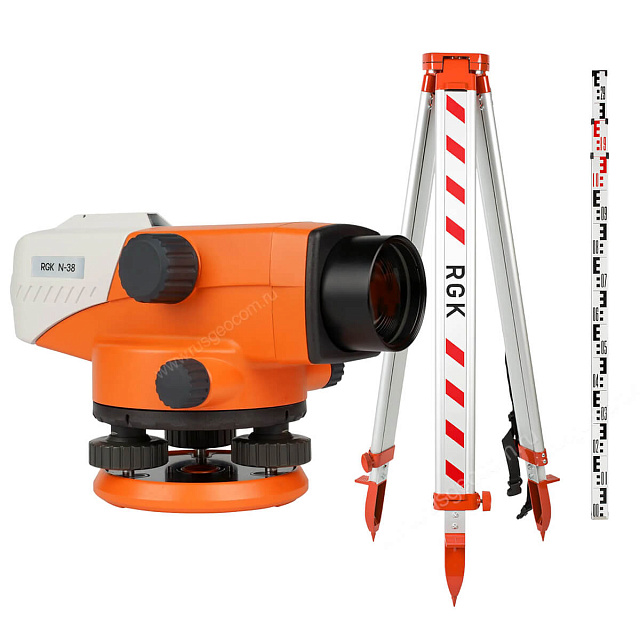 Комплект 3в1: нивелир RGK N-38 + штатив, рейка 7м