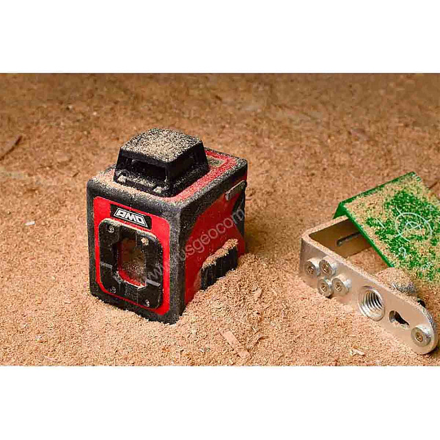 Прибор можно поставить на любую ровную поверхность, при этом наклон до 3° автоматически компенсируется, а при превышении этого предела линии начинают мерцать. Для комфортной работы под углом нивелир снабжен металлической втулкой с резьбой 1/4”, при помощи которой производится монтаж на штатив.