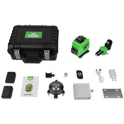 Ключевые отличия от младшей модели - функция многоступенчатой регулировки яркости лучей и более богатая комплектация с прочным защитным кейсом для транспортировки лазерного уровня и всех необходимых аксессуаров.