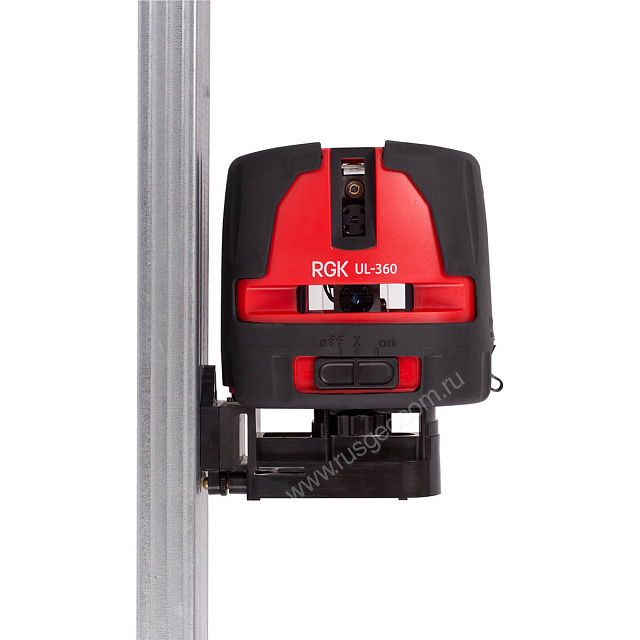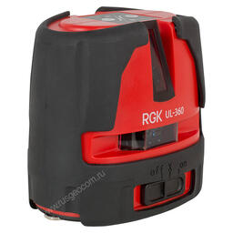 Лазерный уровень RGK UL-360 — компактный и удобный построитель плоскостей, проецирующий 2 горизонтальные линии с развёрткой 360° и 2 вертикальные — с углом 240°. Линии могут отображаться как по отдельности, так и все 4 одновременно.