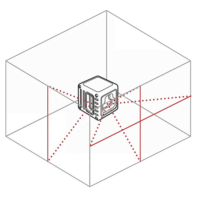 Три лазерные плоскости: одна горизонтальная и две вертикальных.