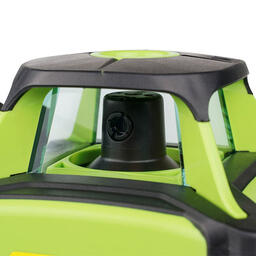 Ротационный нивелир RGK SP-100G с лазерным лучом зеленого цвета одинаково хорошо подходит как для разметки в большом помещении, так и для работы на улице. Яркую линию отлично видно на расстоянии до 30 метров, но полностью потенциал прибора раскрывается с приемником излучения, который включен в комплект. При таком формате работы диапазон расширяется до 250 метров, что позволяет целиком охватить большую зону.