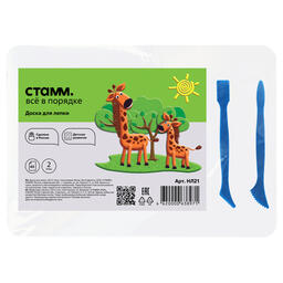 Эта доска формата А5 – незаменимый помощник для лепки. Два стека помогают создавать аккуратные детали, а прочная поверхность позволяет переносить готовые фигурки. Развивает моторику и фантазию у детей от 3 лет.