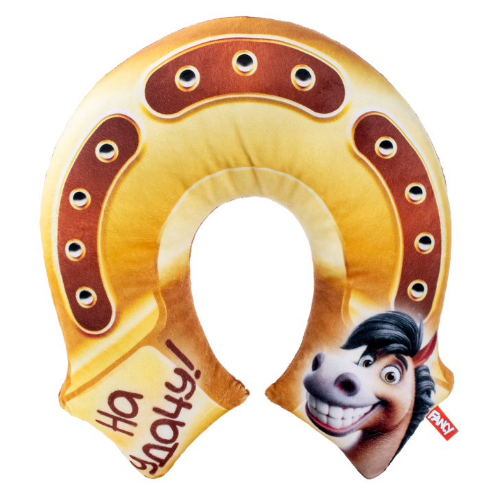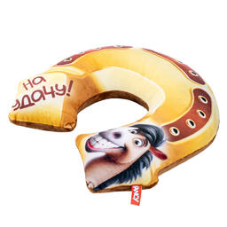Дизайн: подушка в форме подковы с надписью "На удачу"