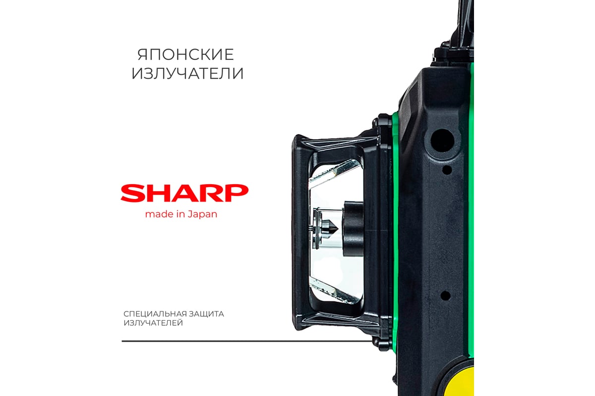 Точное выравнивание и работа под наклоном. Выравнивание уровня автоматическое при наклоне не более 4°. В режиме наклона можно устанавливать лазерный уровень под любым углом. Достаточно отключить звуковую сигнализацию. Такая функция может понадобиться, например, при обшивке мансардного этажа изнутри для наложения всех листов обшивки в одной плоскости.