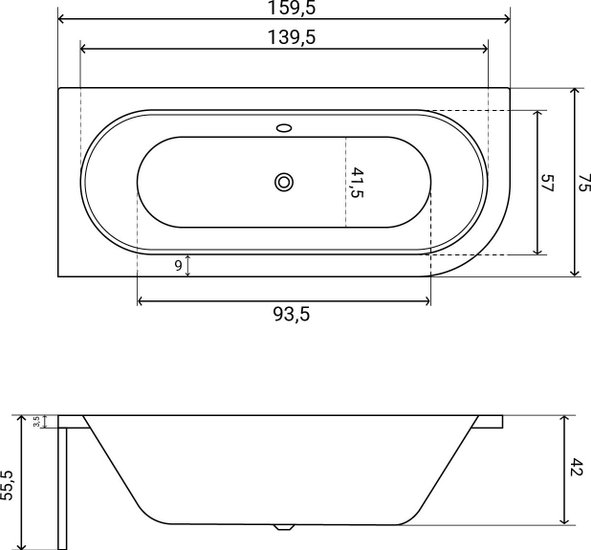 • Глубина ванны 42 см
