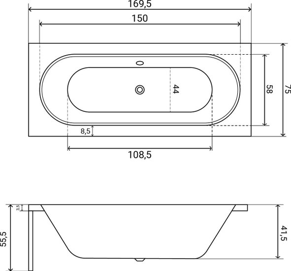 Ava 170х75 21208070 (с ножками и лицевым черным экраном)
