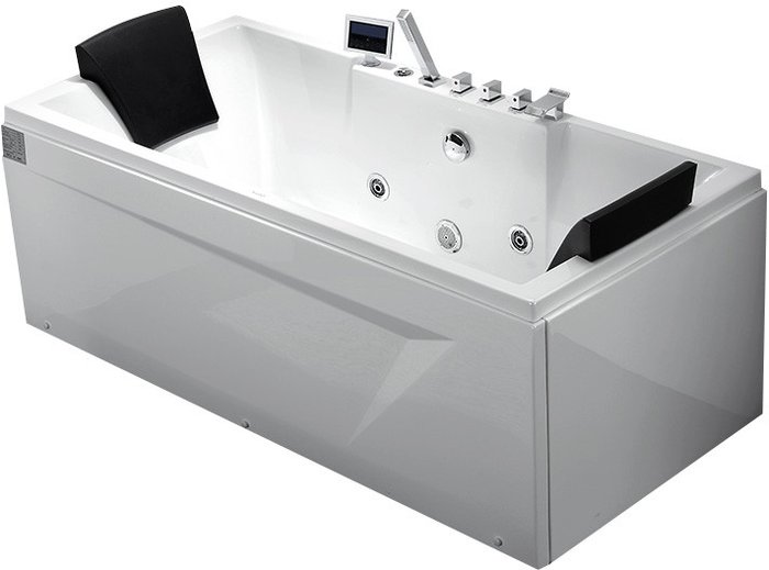 - Дополнительные комплектующие панель фронтальная, каркас, подголовник, слив-перелив, аэромассаж, гидромассаж, смеситель, душевая лейка