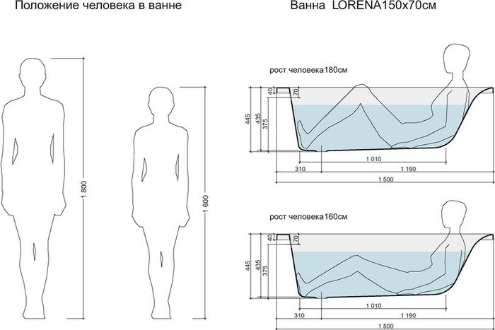 Lorena 150x70 с ножками со смесителем Brasko Black однорыч. (с сифоном Prime)