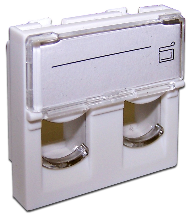 Вставка 45x45 на 2 модуля, со шторкой и увеличенным окном маркировки, белая