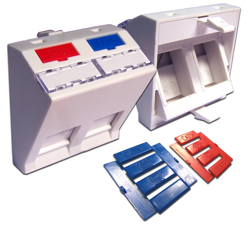 Вставка 45x45 на 2 кейстоуна, угловая, со шторкой, маркировкой и иконками, белая
