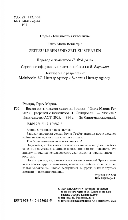 Книга АСТ Время жить и время умирать, твердая обложка (Ремарк Эрих Мария)
