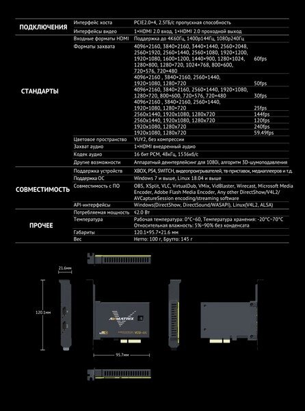 Устройство видеозахвата Avmatrix VC12-4K HDMI PCIE / 29982