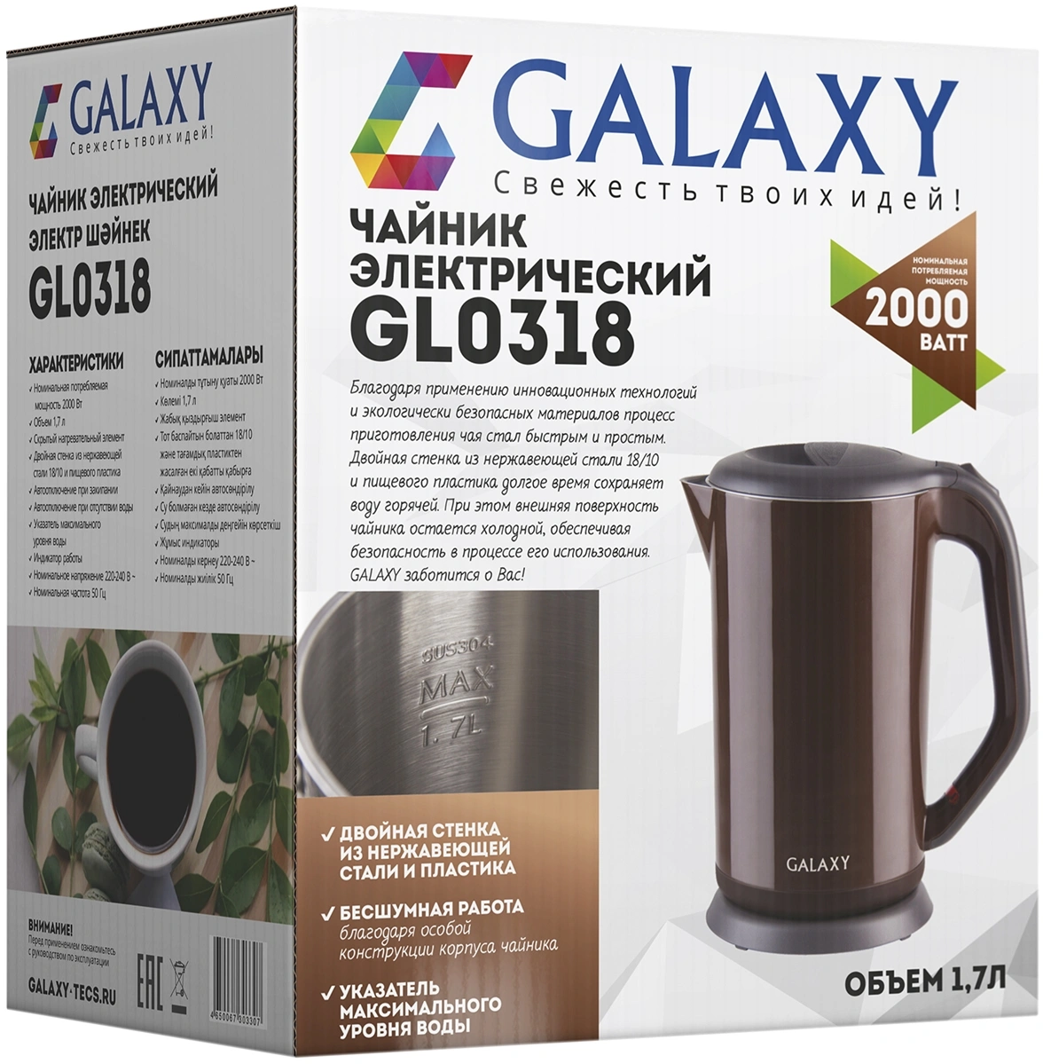 Чайник электрический Galaxy Line GL 0318 1.7л. 2000Вт коричневый/черный корпус: металл/пластик (7010103189)