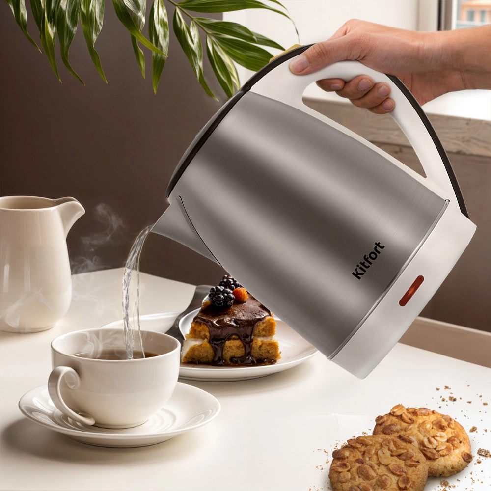 Чайник электрический Kitfort КТ-6654 1.7л. 1800Вт нержавеющая сталь/черный корпус: нерж.сталь/пластик