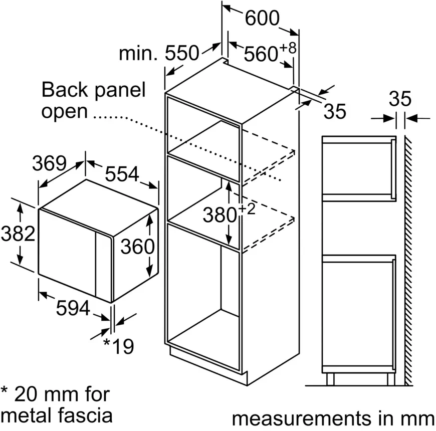 • Размеры для встраивания 56x38x55см