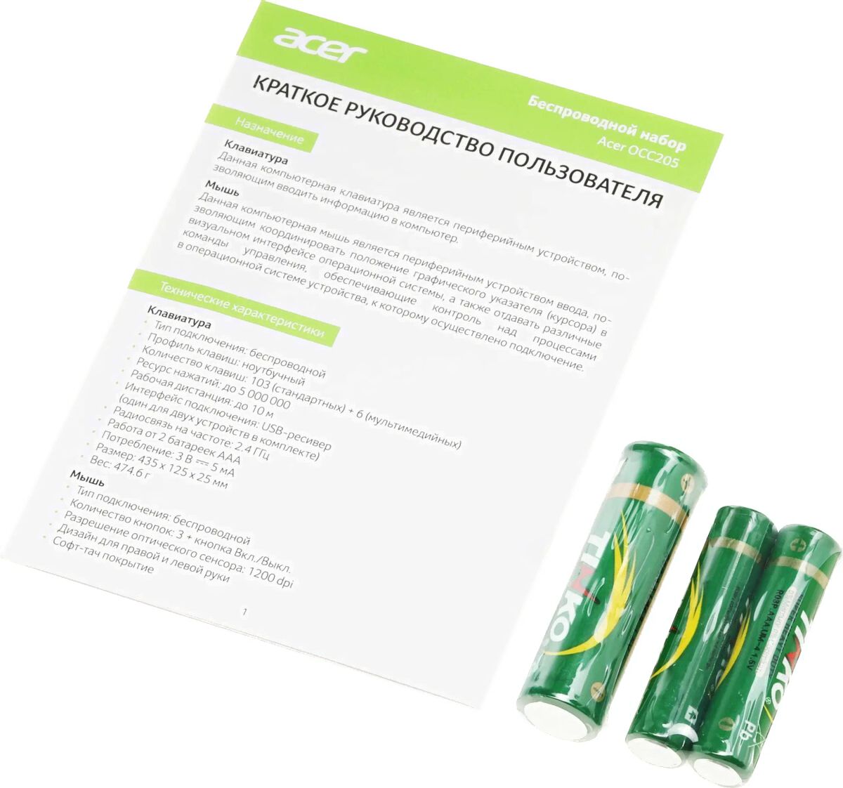 • Комплект поставки USB-приемник, батарейки, клавиатура, мышь, документация