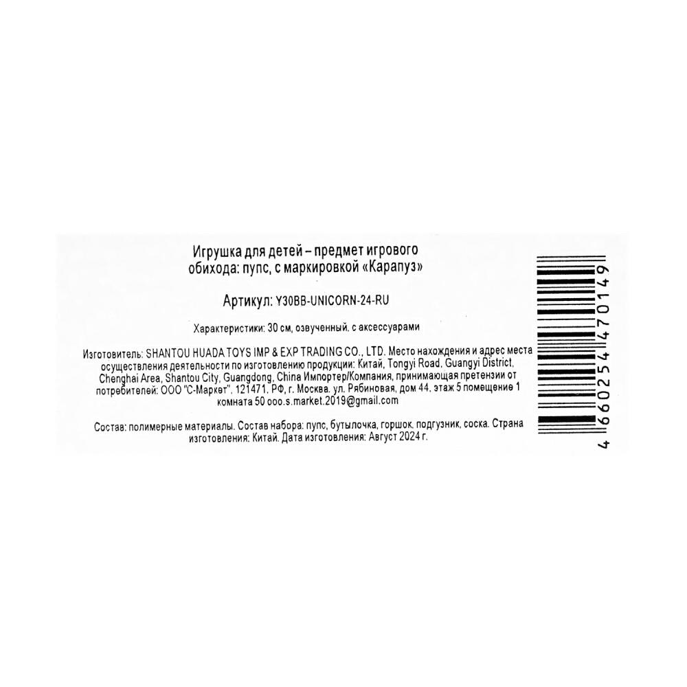Пупс с аксессуарами Карапуз Y30BB-UNICORN-24-RU