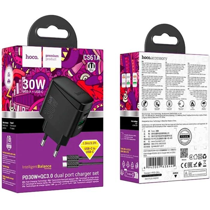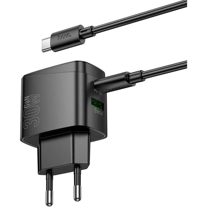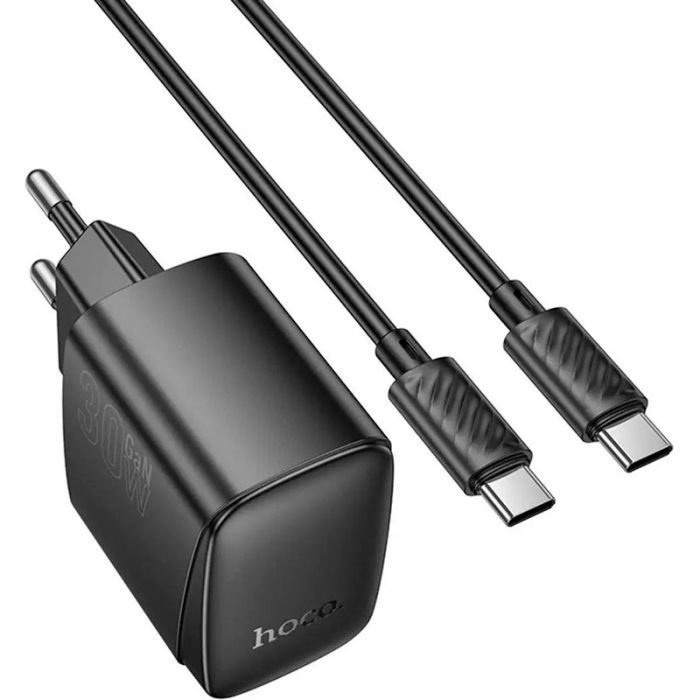 Зарядний пристрій HOCO CS61A Bright 1xUSB-C PD30W + 1xUSB QC3.0 + cable USB-C to USB-C Black (6942007638449)