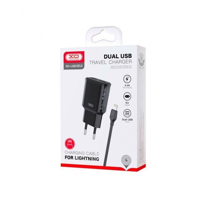 - Модель L92C (2USB/2.4A) + USB - Lightning Чорний