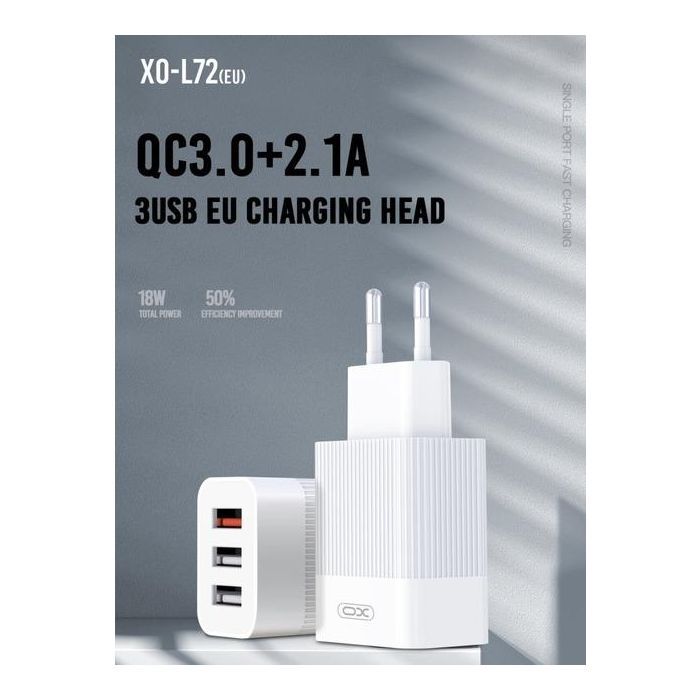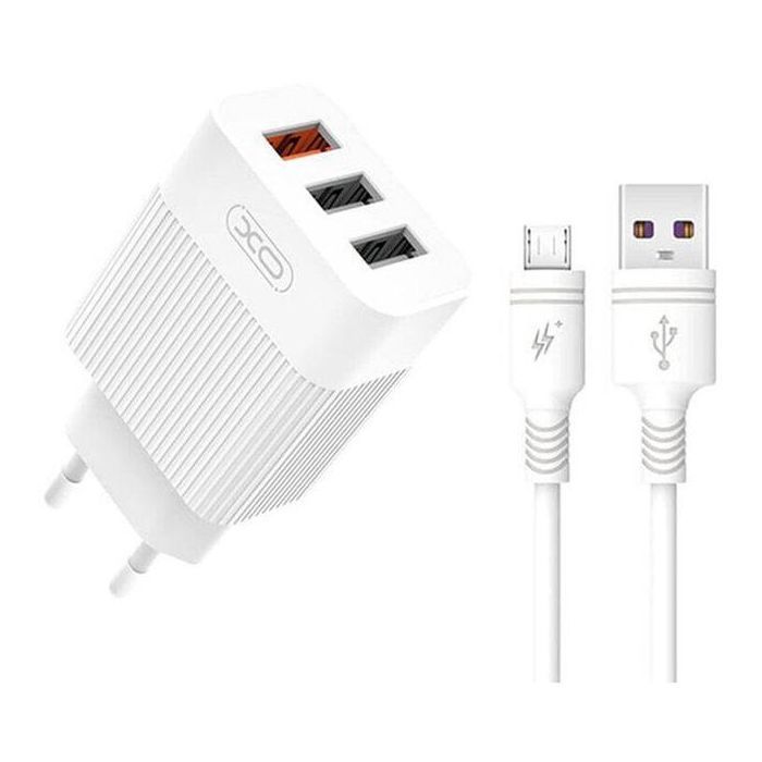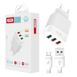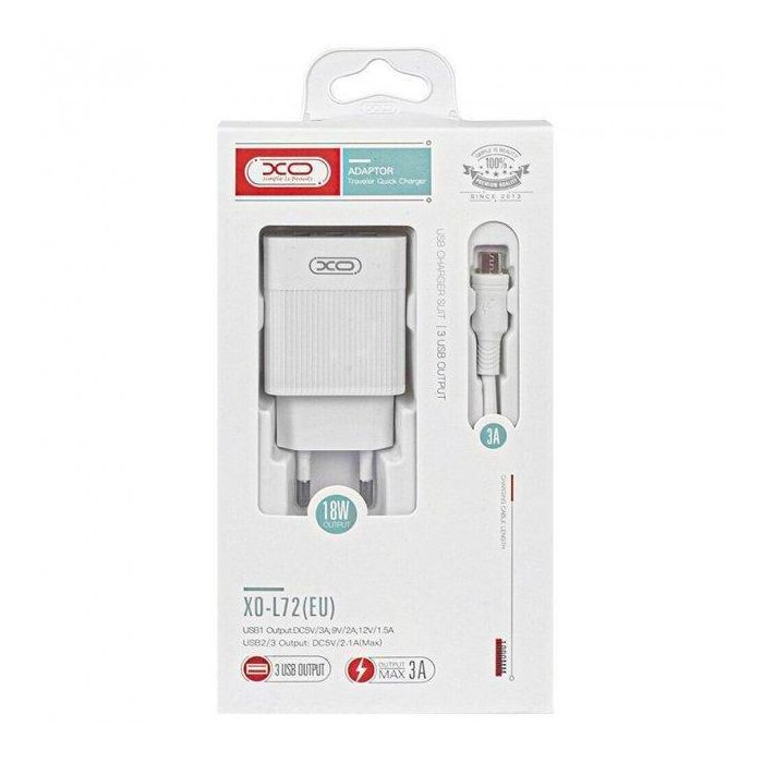 Зарядний пристрій XO USB L72 (3A, QC3.0, 3 Usb) + cable Micro USB White (XO-L72-BK)