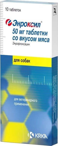 Таблетки антибактериальные для животных KRKA Энроксил со вкусом мяса 50мг