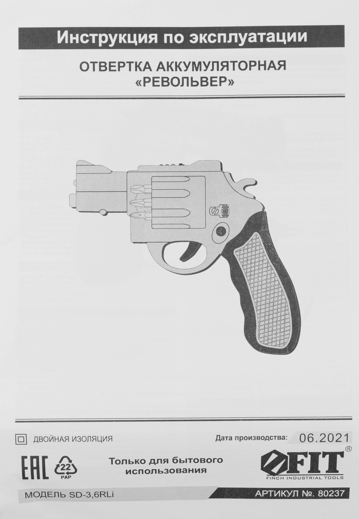 Отвертка аккум. FIT SD-3,6RLi аккум. патрон:шестигранник 6.35 мм (1/4) (80237)