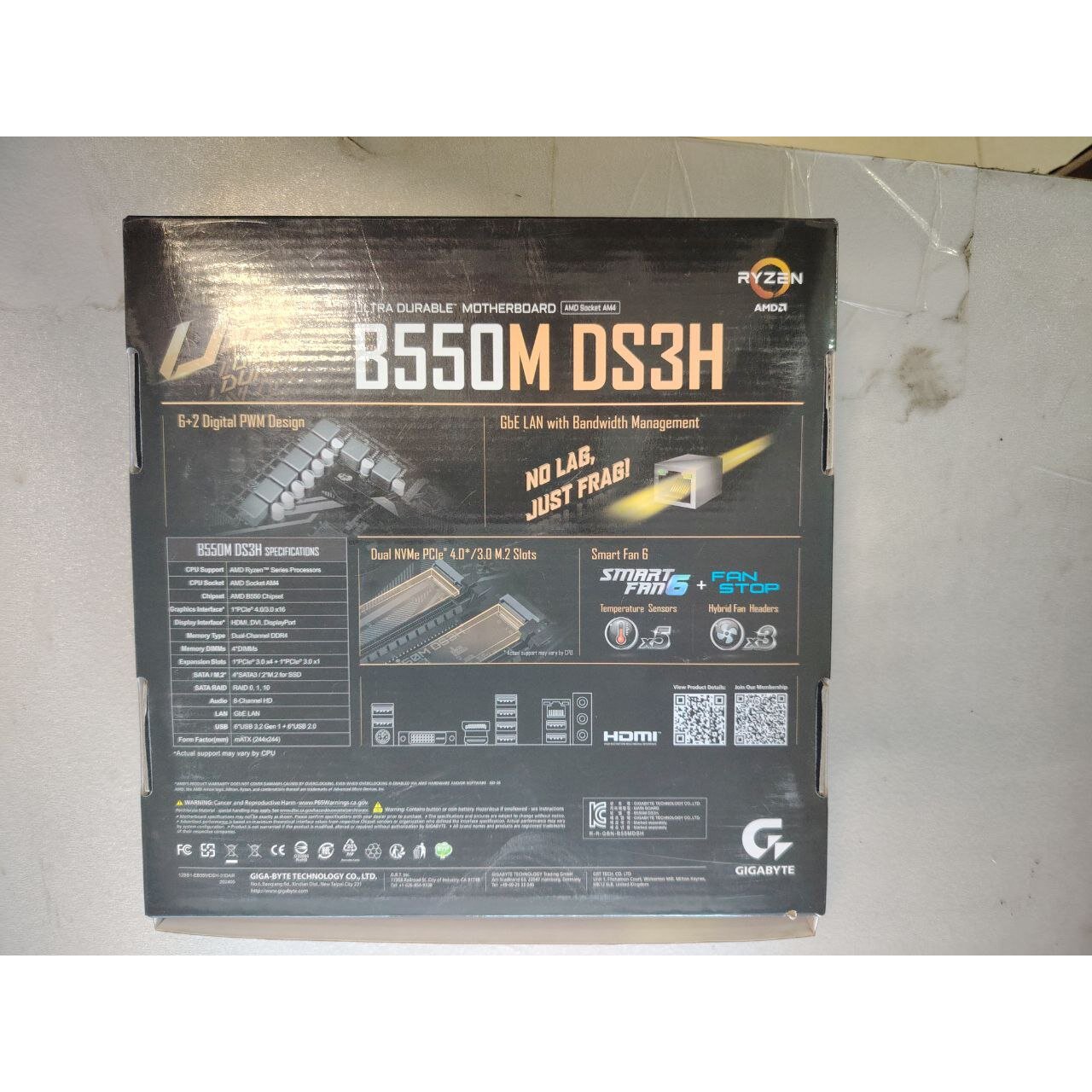 УЦ MB sAM4 Gigabyte B550M DS3H 4xDDR4-3200, DVI-D+HDMI, 2xPCI-Ex16, 1xPCI-Ex1, 4xSATA3(RAID 0/1/10), 2xM.2 (плохая упаковка, перепрошивка BIOS)