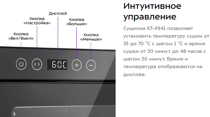 • Температура сушки 70 °C (35-70°C с шагом 1°C)
