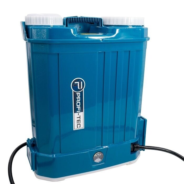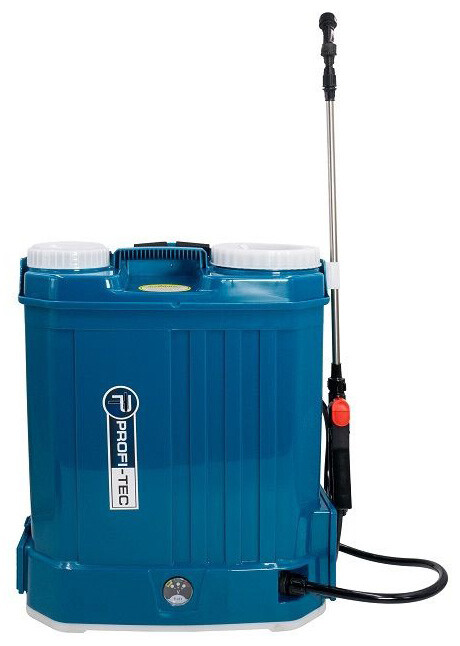 PROFI-TEC PS1610 - аккумуляторный автономный переносной опрыскиватель, используемый для обработки растений и различных поверхностей. Он применяется для дезинфекционных работ, защиты сельхозкультур, орошения, хим. обработки садов. Подходит для работы с водными растворами и моющими средствами, эффективно справляется с распылением на больших площадях.