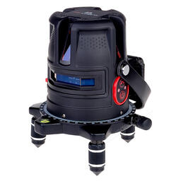 Поворотное основание. В основании корпуса расположена поворотная часть для плавного и точного наведения вертикальных линий. В поворотном механизме используются подшипники плавного скольжения, с высокой осевой точностью. Благодаря этому достигается отличная точность, мягкость и плавность поворота прибора вокруг оси. Ручкой плавной подстройки лазерный нивелир ADA PROLiner 4V поворачивается на 360° вокруг своей оси. Наведение на нужную точку точное и простое.