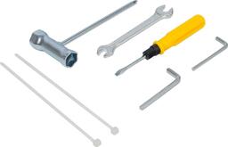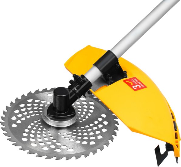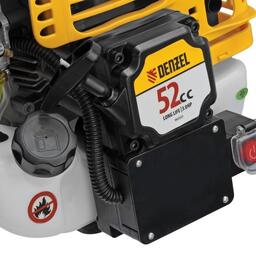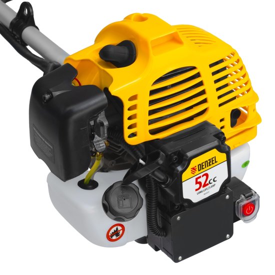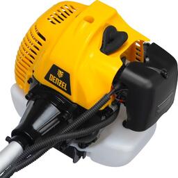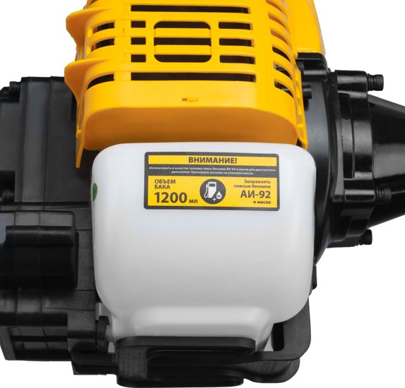 Комплектация- Двигатель с правой рукояткой- Левая рукоятка- Штанга- Защитный кожух с ножом- Катушка с леской- Пильный диск 40Т- Дозатор для приготовления смеси- Ремень плечевой с защитой бедра- Узел крепления рукояток с крепежом- Свечной ключ- Шестигранник H5- Шестигранник H6- Болт M6×20- Болт M5×15- Гайка M5- Аккумулятор- Зарядное устройство для аккумулятора