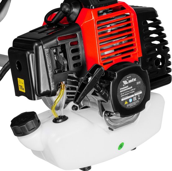 ✅ Бензиновый триммер MTX MT-43 962335 с неразъемной штангой и мощным двигателем объемом 43 см³ идеально подходит для стрижки и скашивания травы, а также для формирования аккуратных границ газонов. Он отлично справляется с обработкой участков вдоль стен, оград и вокруг деревьев, что делает его незаменимым помощником на даче.✅ В качестве режущих элементов используются катушка с леской диаметром 3 мм и трехлопастный нож. Эти инструменты позволяют эффективно скашивать даже густую траву и сорняки с толстыми стеблями. Ширина скашивания леской составляет 420 мм, а ножом — 255 мм, что обеспечивает высокую производительность работы.✅ Легкий старт обеспечивается благодаря праймеру (насосу подкачки топлива), который упрощает запуск двигателя после длительного простоя. Это особенно удобно для тех, кто ценит время и эффективность.✅ Комфортная работа с триммером достигается благодаря плечевому ремню и рукояткам велосипедного типа, что позволяет удобно удерживать и направлять инструмент. В комплекте также имеется дозатор для приготовления топливной смеси, что делает подготовку к работе простой и быстрой.✅ Быстрое удлинение корда — это еще одно преимущество. Достаточно слегка ударить катушкой по земле во время работы, и излишки лески будут обрезаны специальным ножом на кожухе.⚠️ Экономичность триммера впечатляет: полного бака хватает на 1 час непрерывной работы. Безопасность также не оставлена без внимания — предусмотрена блокировка курка газа для предотвращения случайного запуска, а защитный кожух препятствует вылету травы, веток и камней в сторону пользователя.✅ Эргономичность устройства обеспечивается тем, что все управляющие клавиши находятся на правой рукоятке, что делает работу с триммером MTX MT-43 максимально удобной и эффективной.✅ Бензиновый триммер MTX MT-43 962335 с неразъемной штангой и мощным двигателем объемом 43 см³ идеально подходит для стрижки и скашивания травы, а также для формирования аккуратных границ газонов. Он отлично справляется с обработкой участков вдоль стен, оград и вокруг деревьев, что делает его незаменимым помощником на даче.✅ В качестве режущих элементов используются катушка с леской диаметром 3 мм и трехлопастный нож. Эти инструменты позволяют эффективно скашивать даже густую траву и сорняки с толстыми стеблями. Ширина скашивания леской составляет 420 мм, а ножом — 255 мм, что обеспечивает высокую производительность работы.✅ Легкий старт обеспечивается благодаря праймеру (насосу подкачки топлива), который упрощает запуск двигателя после длительного простоя. Это особенно удобно для тех, кто ценит время и эффективность.✅ Комфортная работа с триммером достигается благодаря плечевому ремню и рукояткам велосипедного типа, что позволяет удобно удерживать и направлять инструмент. В комплекте также имеется дозатор для приготовления топливной смеси, что делает подготовку к работе простой и быстрой.✅ Быстрое удлинение корда — это еще одно преимущество. Достаточно слегка ударить катушкой по земле во время работы, и излишки лески будут обрезаны специальным ножом на кожухе.⚠️ Экономичность триммера впечатляет: полного бака хватает на 1 час непрерывной работы. Безопасность также не оставлена без внимания — предусмотрена блокировка курка газа для предотвращения случайного запуска, а защитный кожух препятс