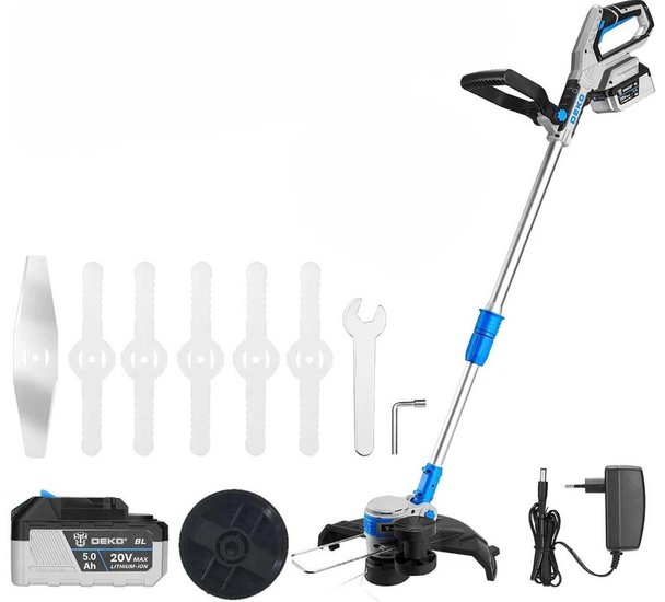 - Комплектация Триммер поставляется в частично разобранном виде:- Триммер - 1 шт- Защитный кожух - 1 шт- Аккумулятор - 2 шт- Колесная база - 1 шт- Ручная катушка - 1 шт- Триммерная головка - 1 шт- Скоба - 1 штВ комплекте:- Режущий диск - 1 шт- Металлический нож - 1 шт- Пластиковые ножи - 5 шт- Зарядное устройство - 1 шт- Торцевой ключ - 1 шт- Гаечный ключ - 1 шт- Крепежный комплект (шайба - 1 шт, винт - 1 шт, гайка - 2 шт) - 1 шт- Руководство по эксплуатации - 1 шт