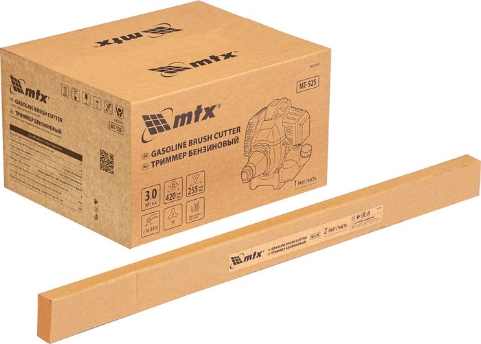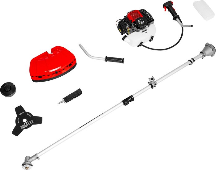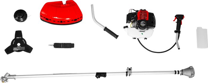 • Комплектация - Двигатель с правой рукояткой 1 шт - Левая рукоятка 1 шт - Штанга 1 шт - Защитный кожух с ножом 1 шт - Кронштейн защитного кожуха 1 шт - Катушка с леской 1 шт - Нож трехлопастной 1 шт - Дозатор для приготовления смеси 1 шт - Ремень плечевой 1 шт - Корпус сцепления с крепежом 1 шт - Редуктор с винтами 1 шт - Узел крепления рукояток с крепежом 1 шт - Узел подвеса ремня 1 шт - Свечной ключ 1 шт - Имбусовый ключ Н5 1 шт - Имбусовый ключ Н6 1 шт - Болт M6×20 4 шт - Болт M5×15 2 шт - Гайка M5 2 шт - Хомут 2 шт - Соединительная муфта 1 шт - Коннектор штанги 1 шт - Руководство по эксплуатации с гарантийным талоном 1 шт