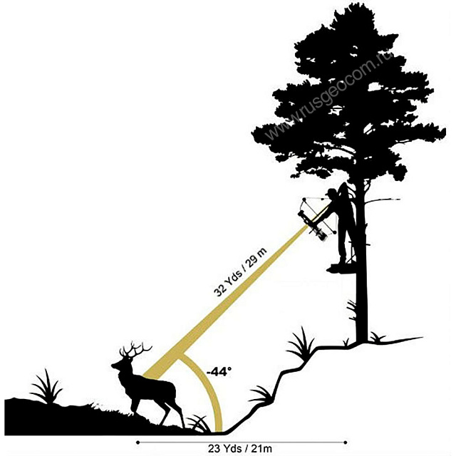 Режим для охоты с луком можно использовать на дистанции до 180 м. Система “Angle Range Compensation” позволяет измерить угол между стрелком и целью, за счет чего дальномер для охоты отображает как длину линии прицеливания, так и истинное горизонтальное расстояние с угловой поправкой.