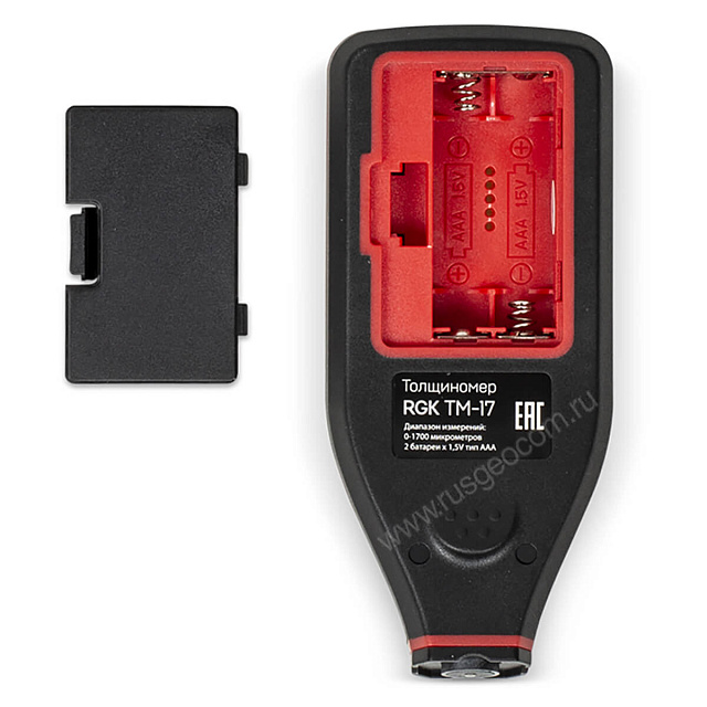 Элементами питания толщиномера служат две мизинчиковые батарееки ААА, что обеспечивает долговременную работу. Автоматическое отключение происходит через 1 минуту бездействия прибора